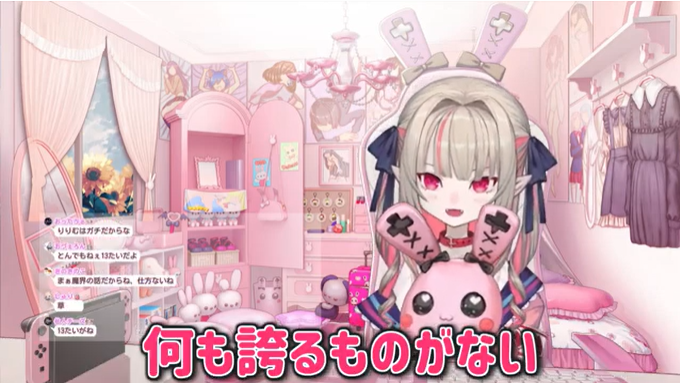 魔界ノりりむのさんはゲームの腕前も安定していて、ピンク系のかわいいものが大好き。