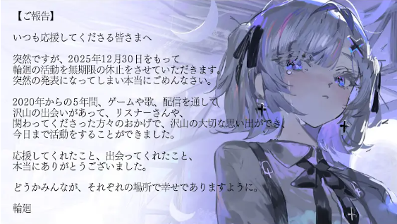 しかし2025年12月末に、突如無期限の活動休止へ。